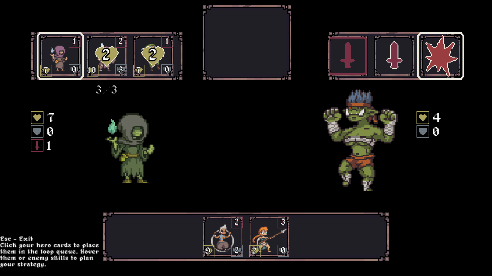 Place your coursor to see details of the heroes and the enemy skills. Click on the heroes to place them on the looping queue. Heroes and enemy skills loop starting left to right. Consider the order of enemy skills to choose the order of your heroes.